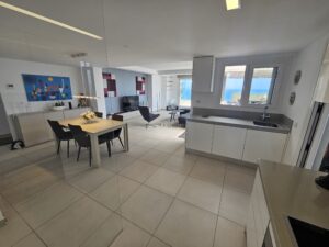 For sale an exceptional luxury penthouse on the beachfront with 3 bedrooms and 2 bathrooms and magnificent panoramic views of the Mediterranean Sea located in Punta Prima (Alicante) in the exclusive Panorama Mar residence, within a complex that offers excellent facilities next to the beach and the promenade, and close to all services. It is the last penthouse for sale with these views.