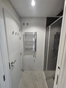 - Living Area: Bright and open living space with Smart TV, air conditioning, and heating.